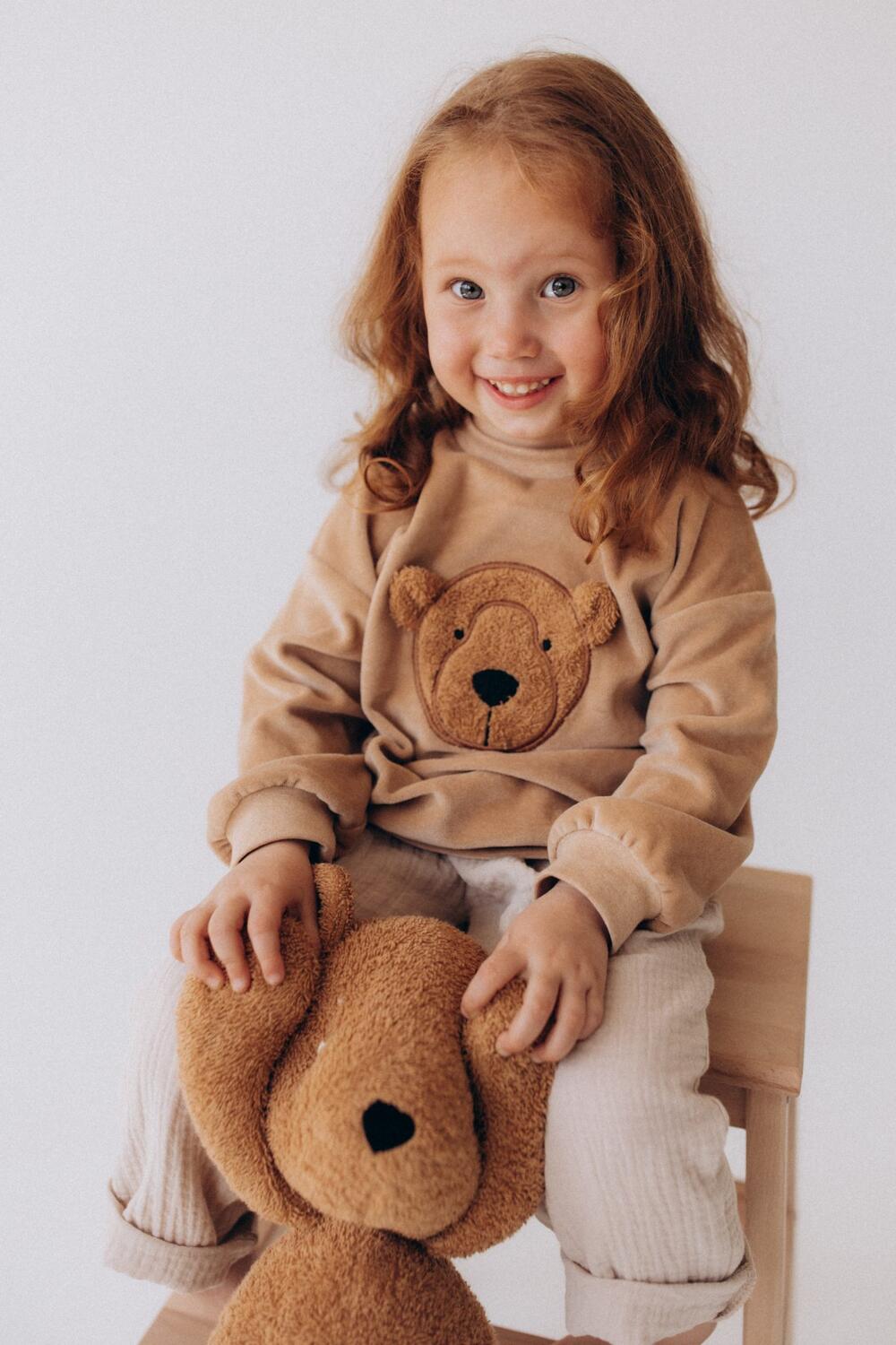 Un maglione morbido e ricamato, pensato per accompagnare i piccoli in ogni avventura con comfort, stile e dolcezza.