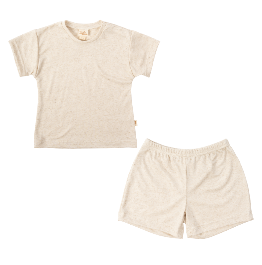 Il set comprende una maglietta leggera e pantaloncini dalla vestibilità rilassata, entrambi progettati per seguire i movimenti del corpo senza costringere. La combinazione di Tencel e lino rende il tessuto traspirante, resistente e naturalmente confortevole, perfetto per notti rigeneranti o mattine lente del weekend.