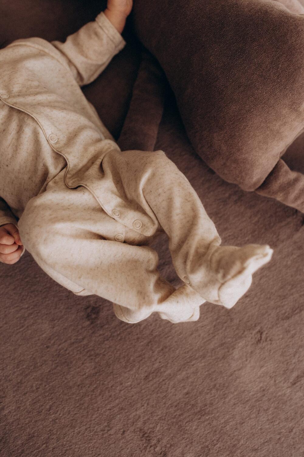 I piedini incorporati garantiscono una copertura completa e un calore avvolgente, perfetti per le notti più fresche. La chiusura anteriore con bottoncini rende la vestizione e il cambio del pannolino semplici e veloci, anche durante i risvegli notturni.