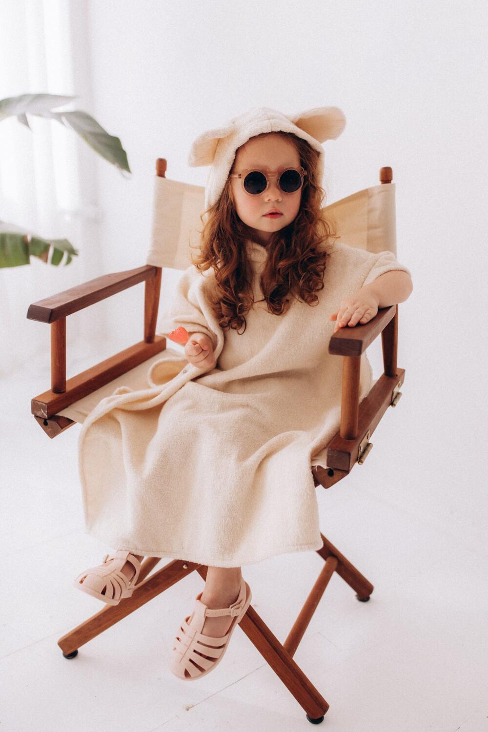 Il cappuccio con orecchie aggiunge un tocco di fantasia irresistibile, mentre il tessuto in cotone assorbe rapidamente l’umidità e mantiene il bambino al caldo dopo il bagnetto o un tuffo in mare. La forma ampia permette libertà di movimento e una vestibilità comoda in ogni momento.