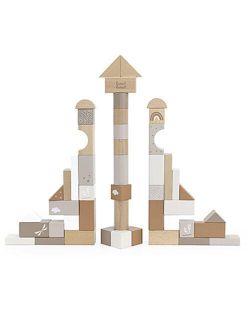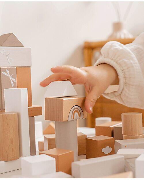 I Blocchi Impilabili in Legno Label Label – 50 Pezzi sono un gioco educativo perfetto per accompagnare la crescita dei più piccoli. Realizzati in legno di faggio certificato FSC, rappresentano una scelta ecologica e sostenibile, rispettando l’ambiente e la sicurezza del bambino.