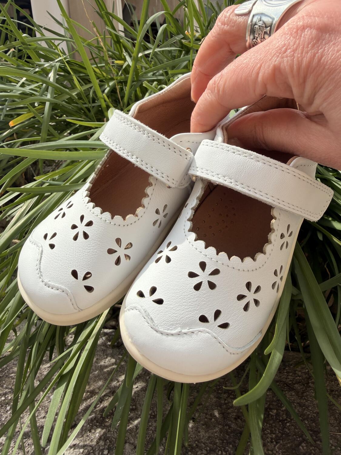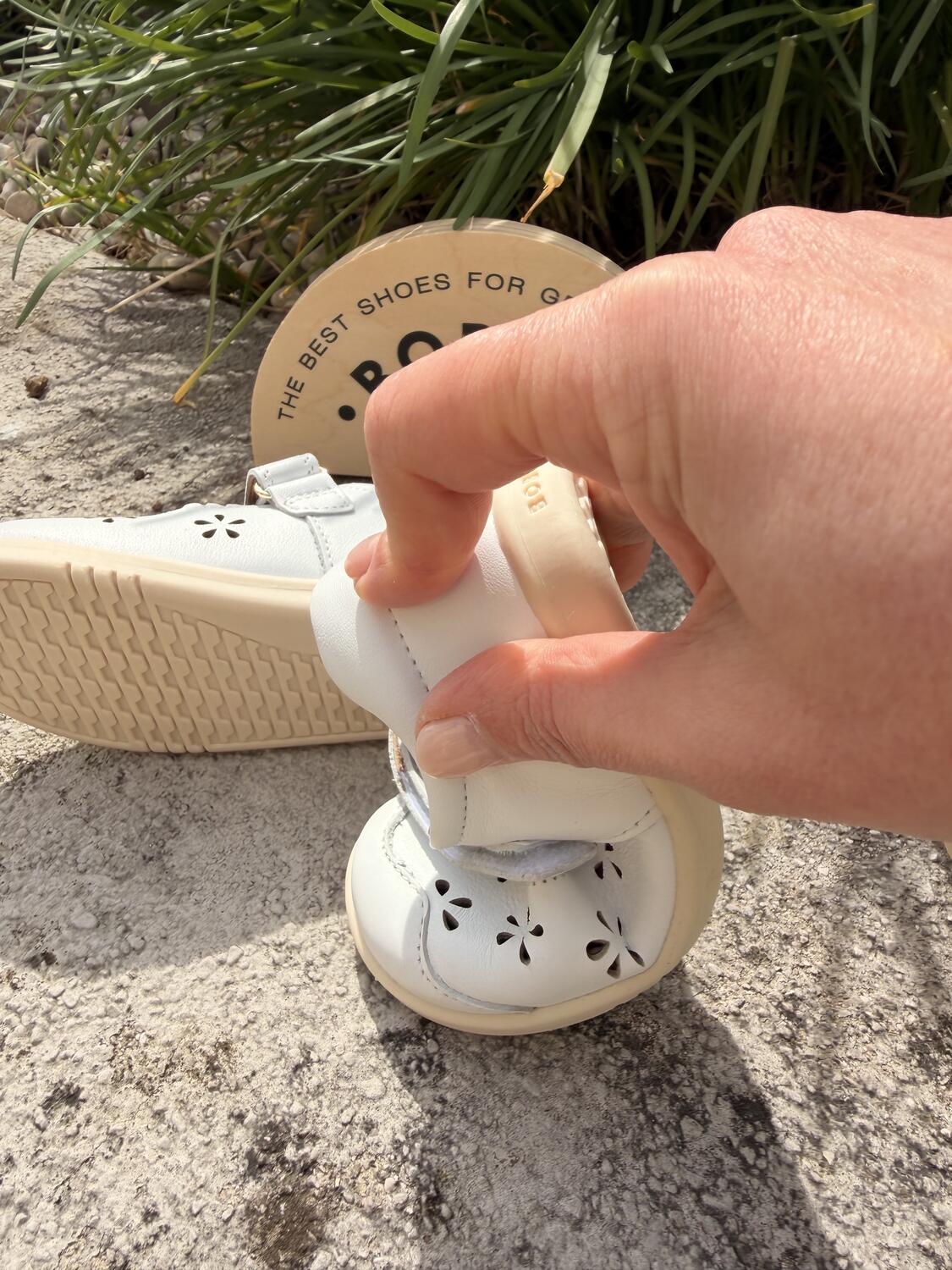 Le Bobux I-Walk Ballerina Heather White sono pensate per i bambini che camminano già con sicurezza e hanno bisogno di una scarpa flessibile ma più strutturata. Il design a ballerina, impreziosito dai forellini a fiore, dona un tocco elegante e luminoso, perfetto per ogni occasione.